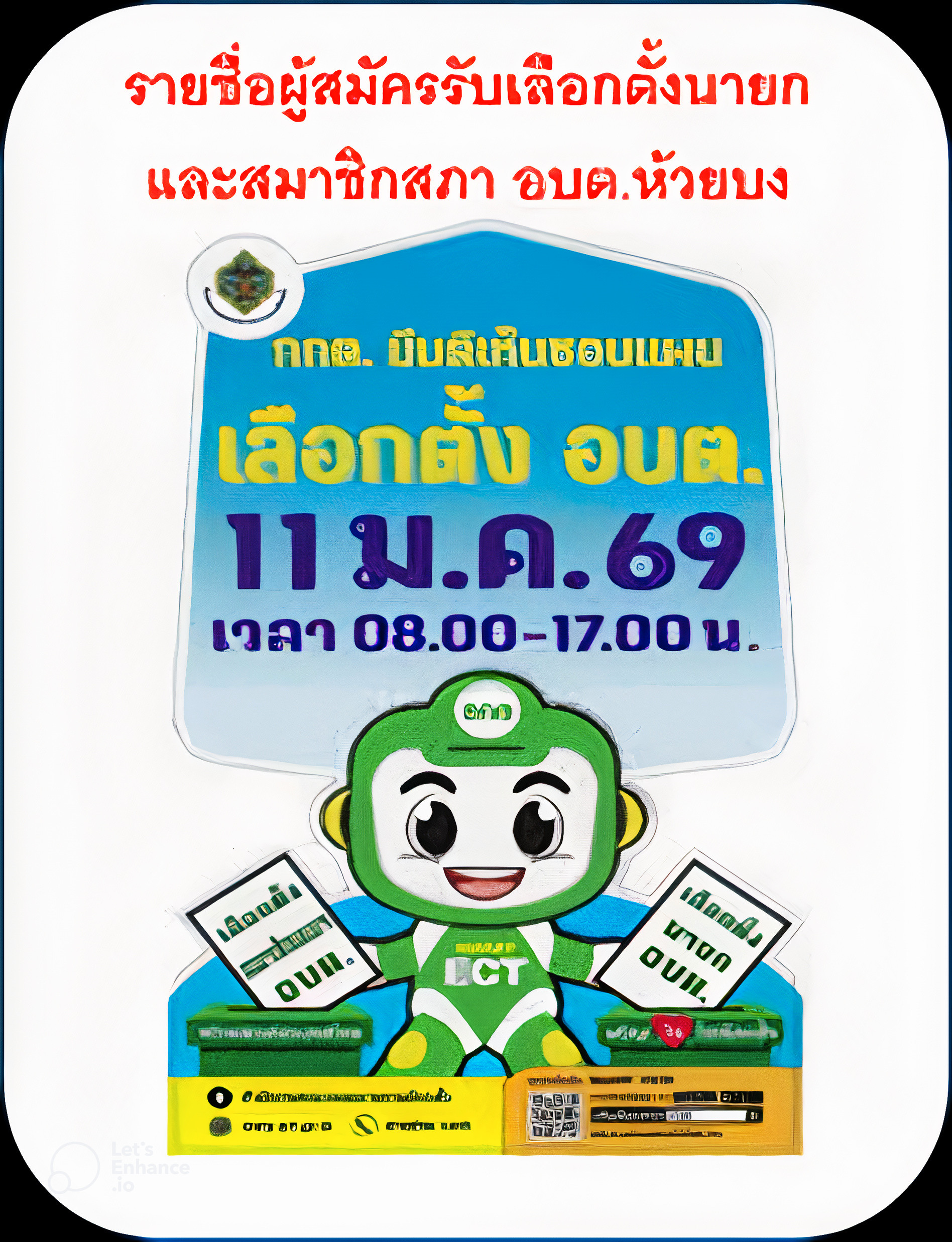 | เว็บไซต์ https://www.huaybong.go.th อีเมล์ saraban_06360118@dla.go.th |